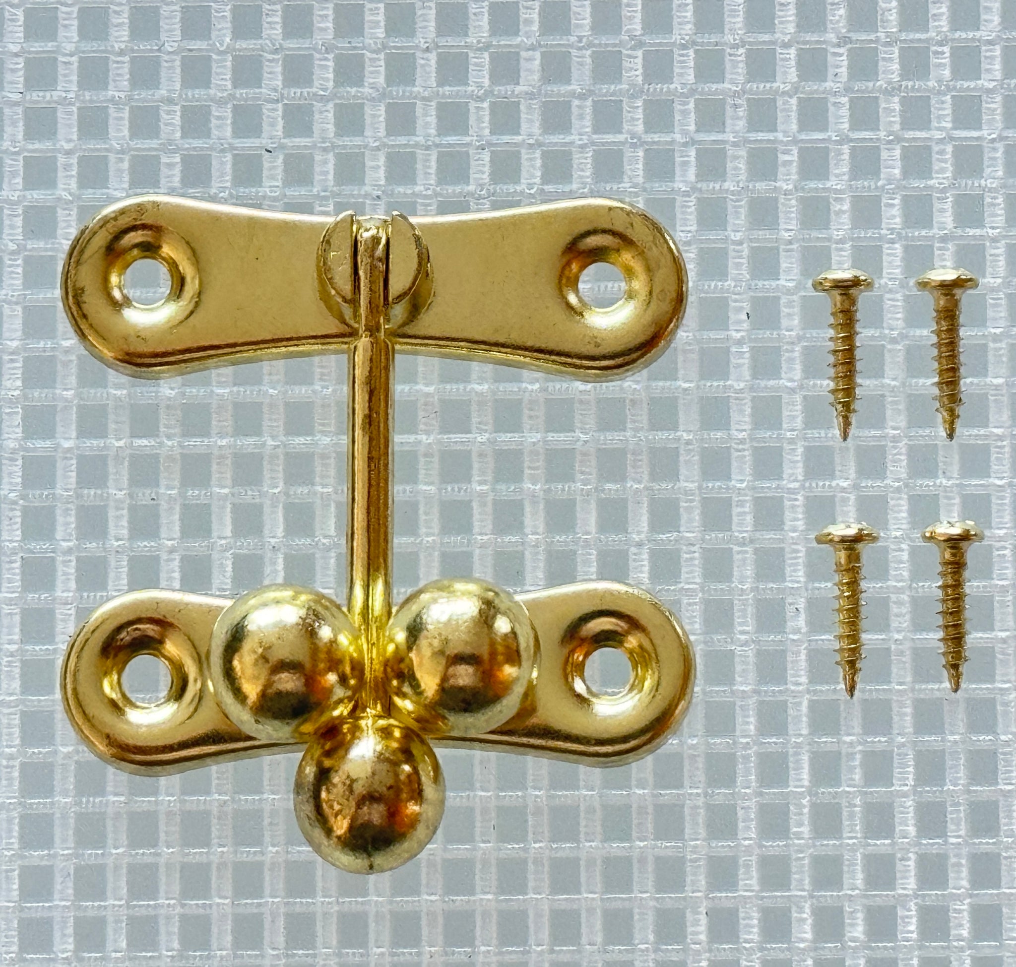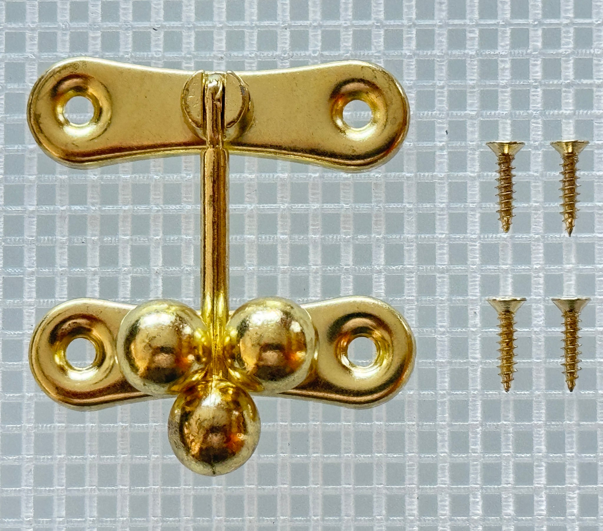 Sturdy clasps that use a pair of sprung ball-tips to trap the latch pin.Made from solid brass. Sizes given are overall width by height. Comes with #2 Screws.