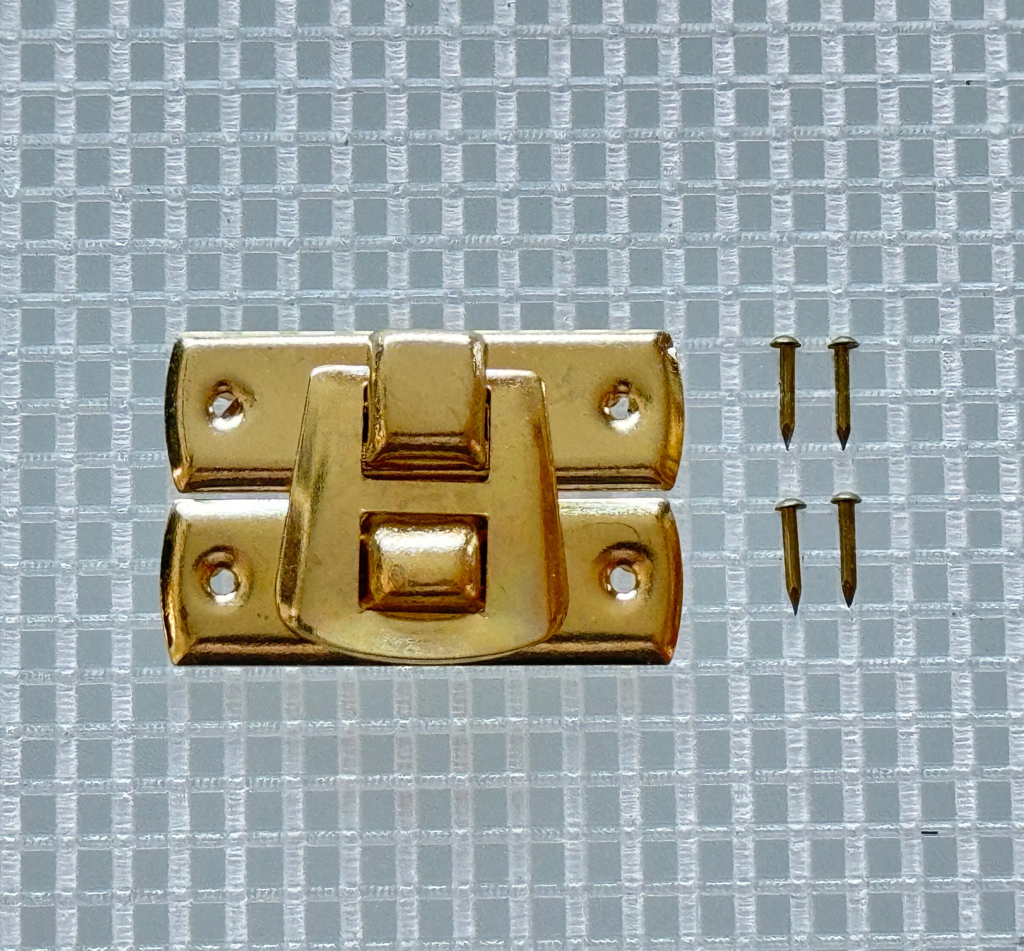 A popular 30 mm small box latch catch, Comes with #20 escutcheon pins.