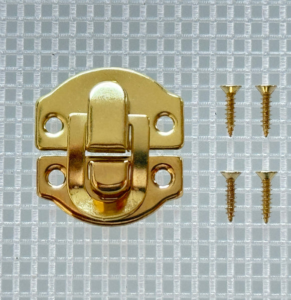 A popular 27 mm wide small box snap catch, fastened with #2 flathead screws.