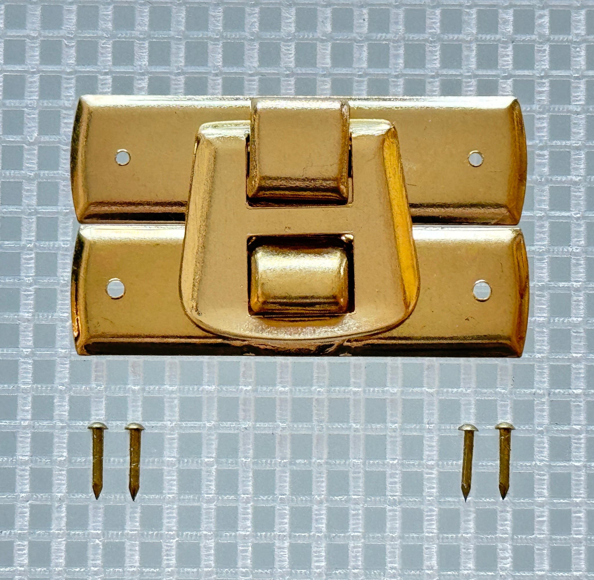 A popular 40 mm small box latch catch, Comes with with #20 escutcheon pins.