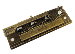 Mount using two screws or bolts (not included). All antique brass-plated steel construction.